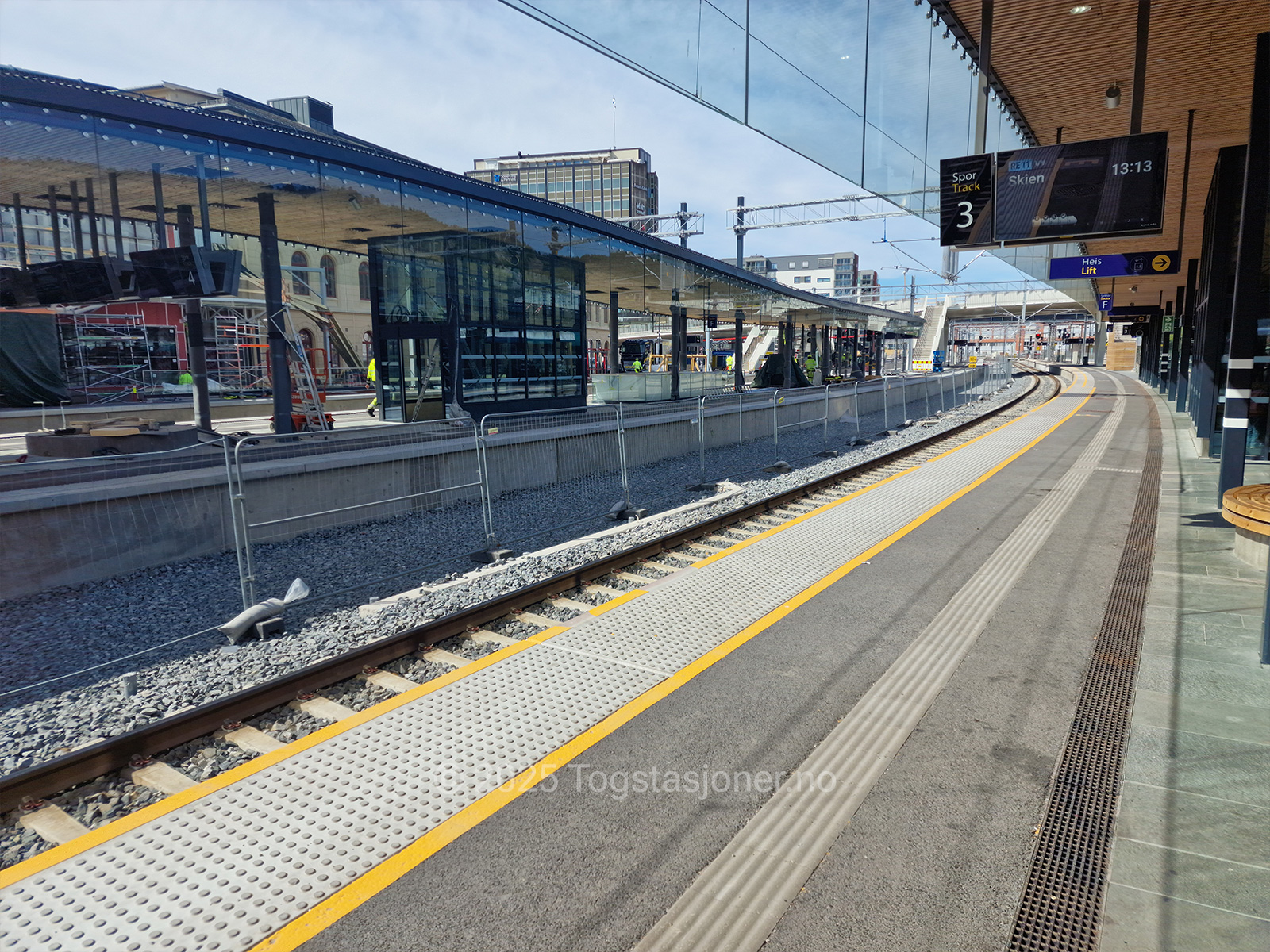Fra Bybrua vil det være adkomst - trapp - til alle plattformer, men her gjenstår noe arbeid enda. Brua i seg selv er åpen, men ikke trappene til/fra plattformer.